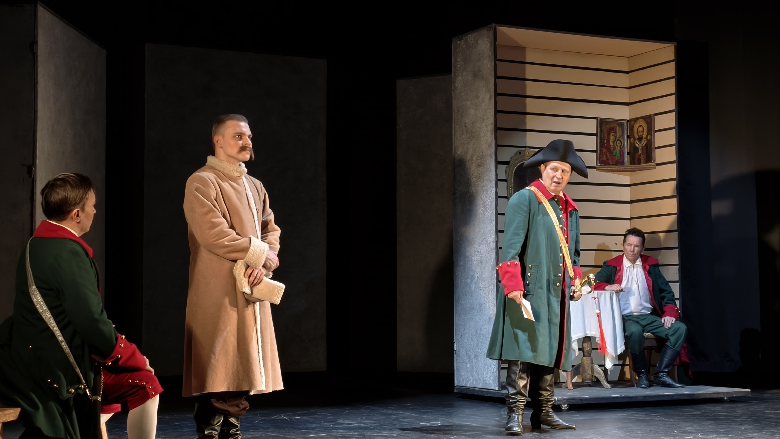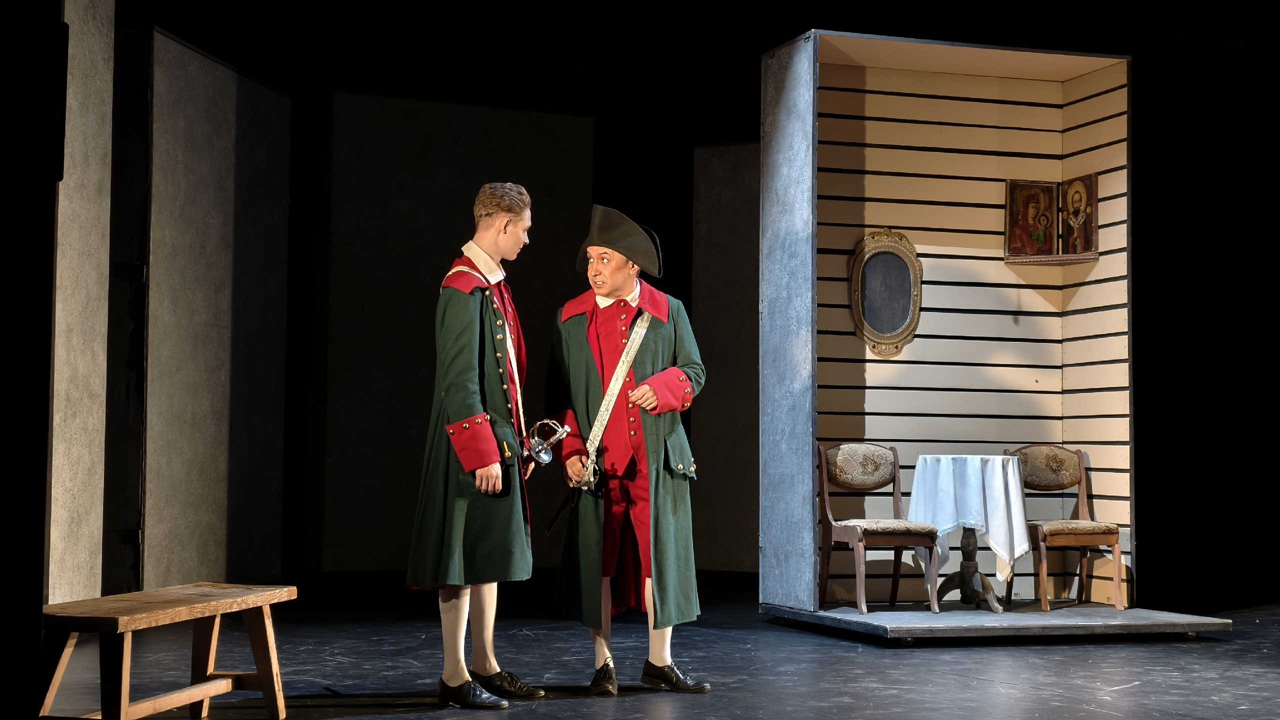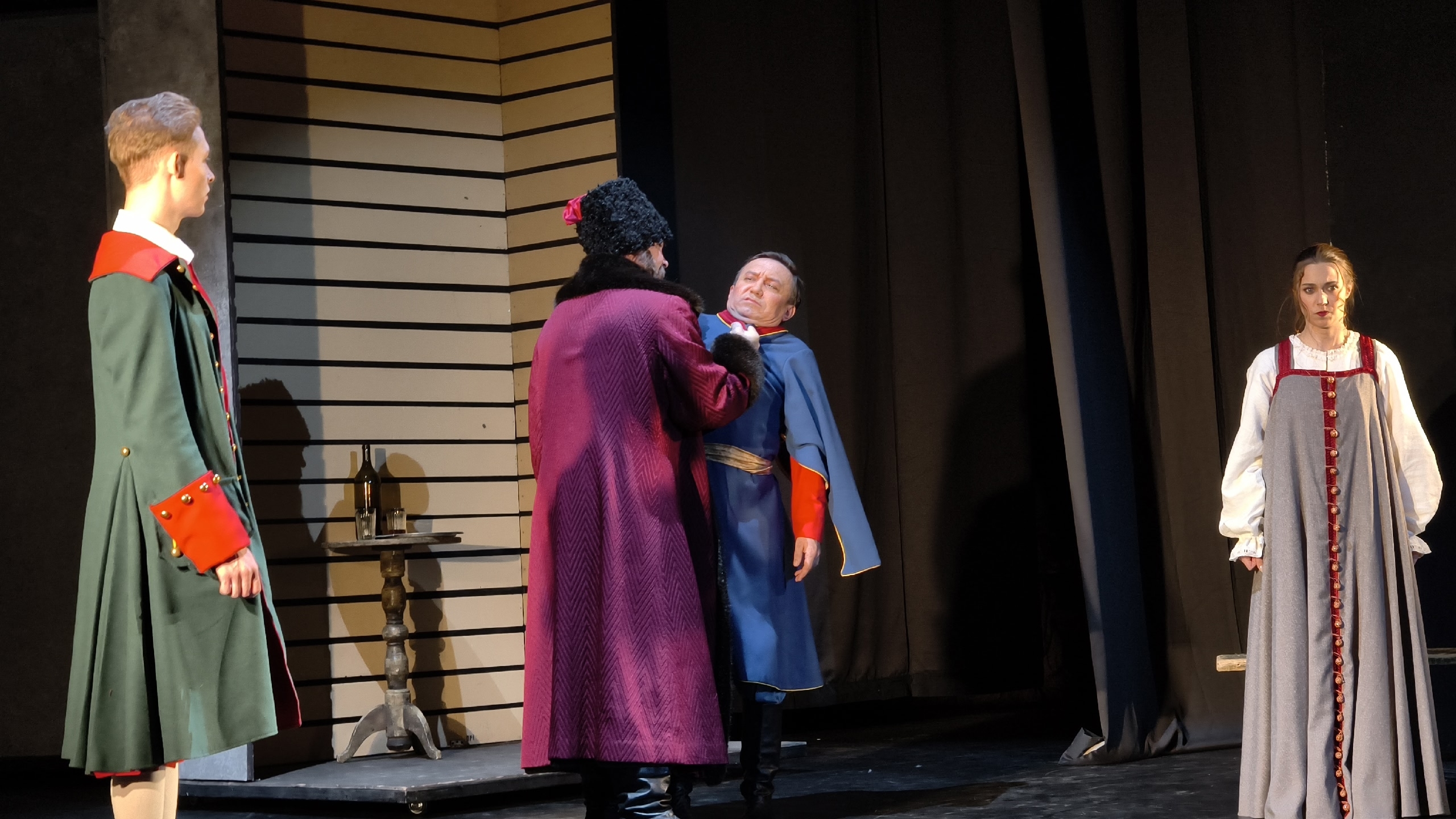 История любви Петра Гринёва и Маши Мироновой во времена «бессмысленного и беспощадного» Пугачевского бунта. Кроме любви в спектакле «Капитанская дочка» по произведению А. С. Пушкина поднимаются и другие темы: верность, честь, совесть, долг русского офицера – и дают почву для размышлений о том, может ли человек сохранить достоинство, если мир вокруг стремительно меняется.